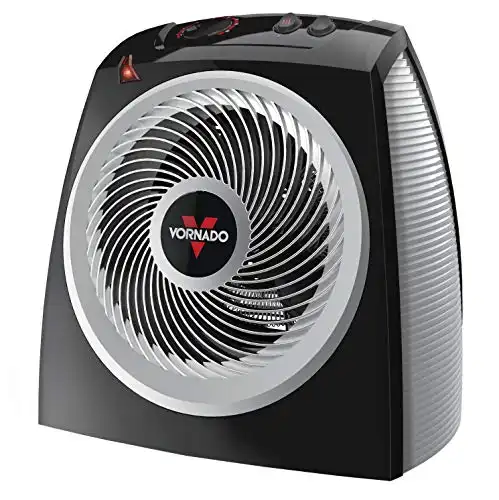 The Vornado comes with two heat settings being a low 750-watts and a high 1500-watts, allowing it to heat up to 300 cubic feet of space comfortably.